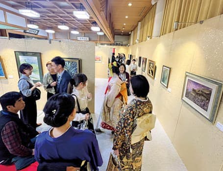 夏の暑さが和らぎ秋の澄んだ空気が吹き込む霜月。本展会場となった清水寺の圓通殿では、日本画、洋画、彫塑、陶芸、工芸、写真、書道などの全195作品(通期で)が展示され、多様な芸術表現を多くのご来場者がお楽しみになりました。また今回、前・後期合わせて1,220名という歴代最高の来場者数を記録され、アンケートでも多くのお喜びの声を賜りました。各ジャンルの作品に加え幕末期の勤王の僧で西郷隆盛とも懇意にした月照上人の流麗な作品をはじめ、「良慶さん」として大衆に慕われた昭和の名僧・大西良慶和上のダイナミックな書や、清水寺住職の森清範貫主による、昨年の世相を表した「今年の漢字一字(2023年)」である《税》が特別展示されました。